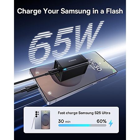 2-Pack Baseus 65W 3-Port (2x USB-C + 1x USB-A) PPS Foldable Charger Block