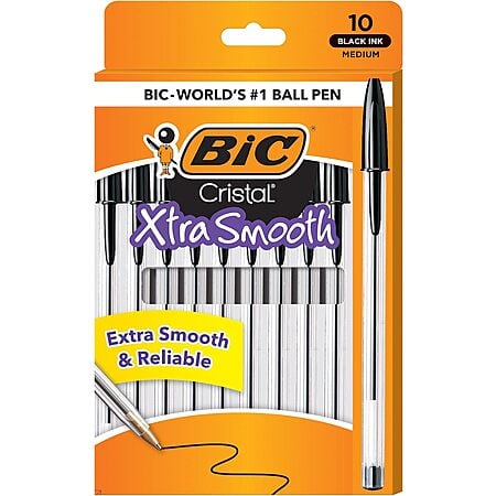 10-Count BIC Cristal Xtra Smooth 1.0mm Medium Point Ballpoint Pens (Black)