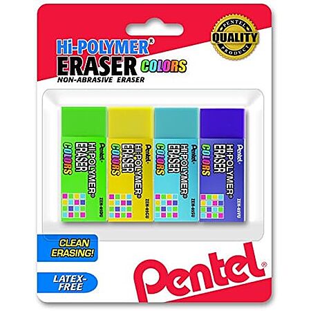 [S&S] $2.33: 4-Pack Pentel Hi-Polymer Block Eraser (Small, Assorted Colors) at Amazon